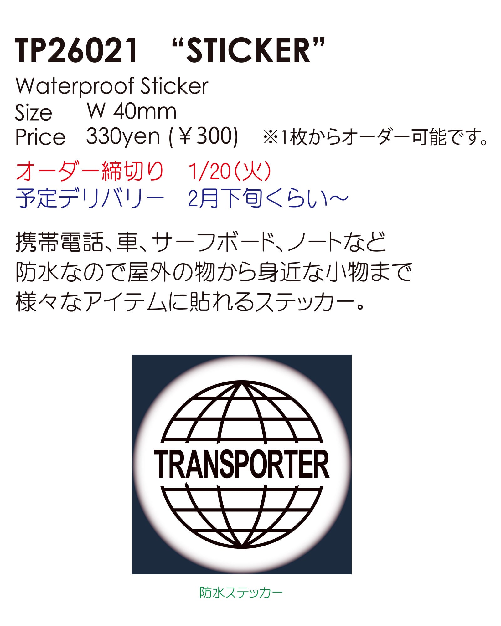トランスポーター 防水ステッカー