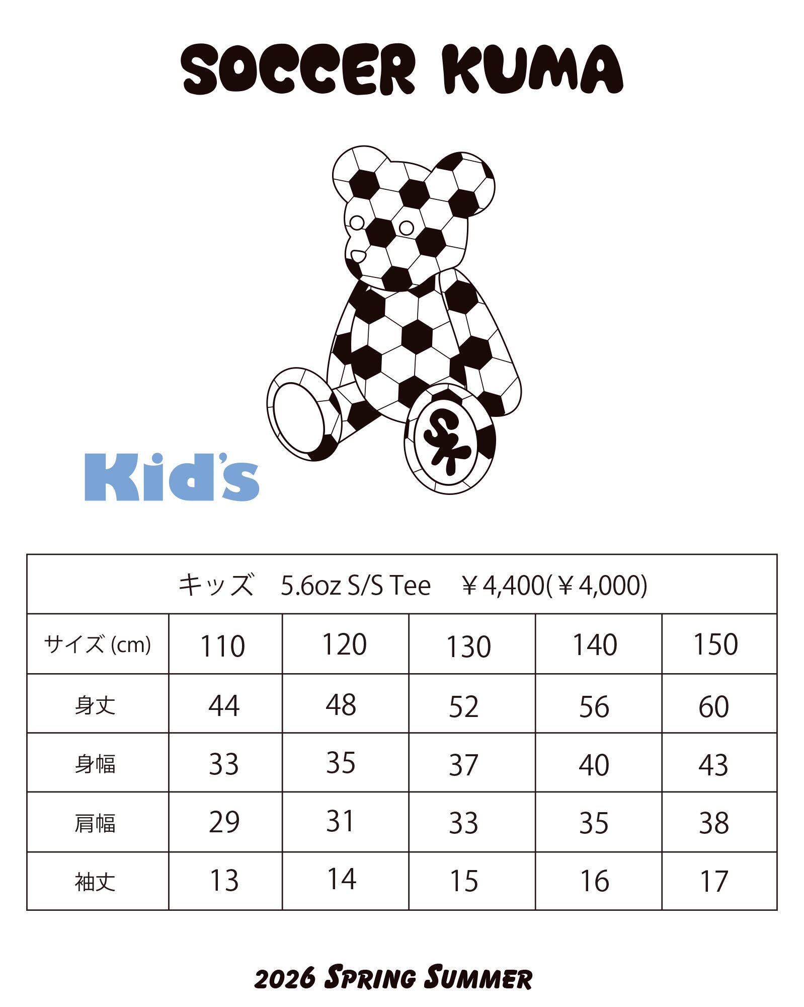 さっかーくま スタンダードLOGO キッズTシャツ
