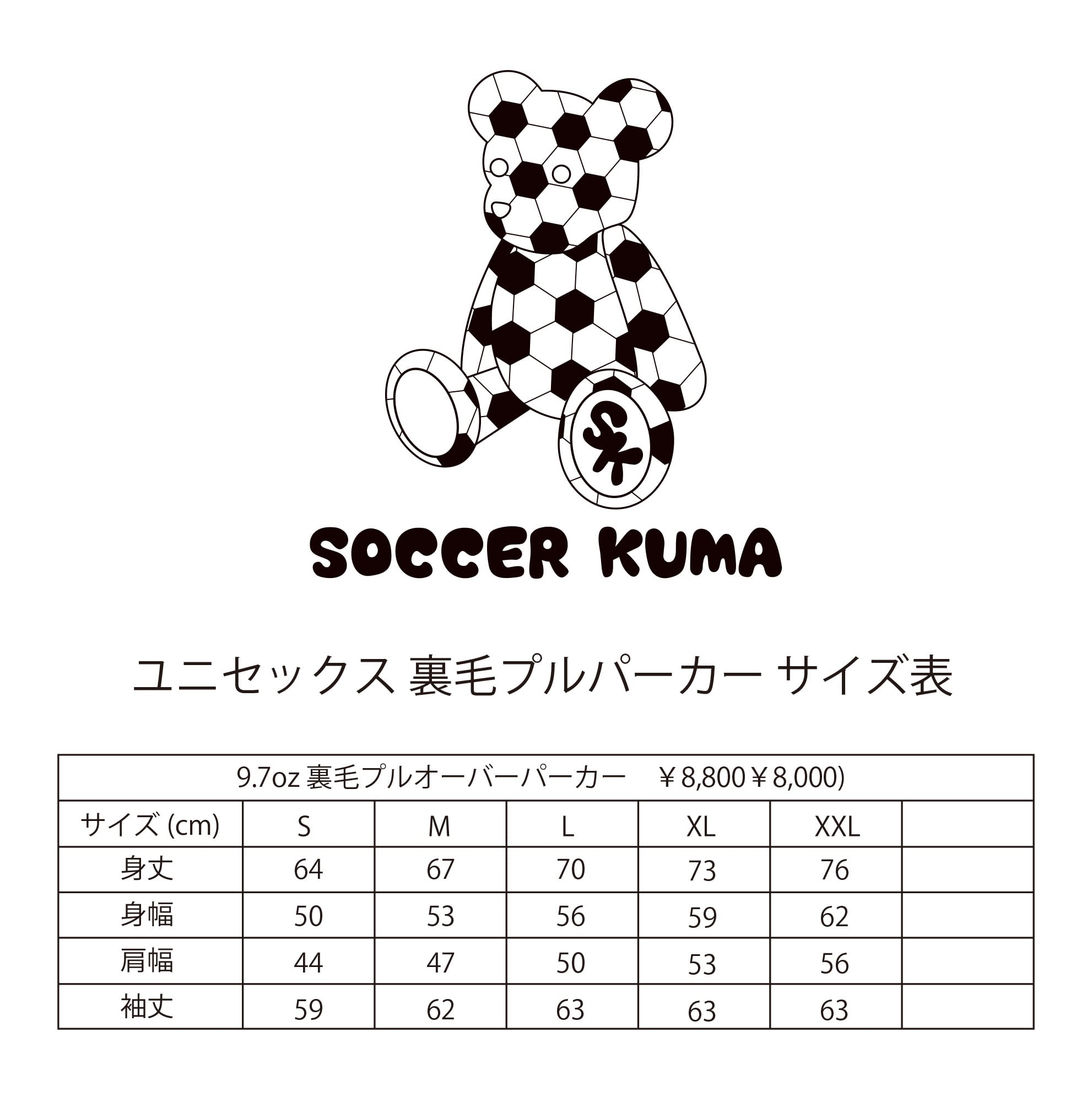 さっかーくま KUMA LOGO裏毛パーカー ユニセックス